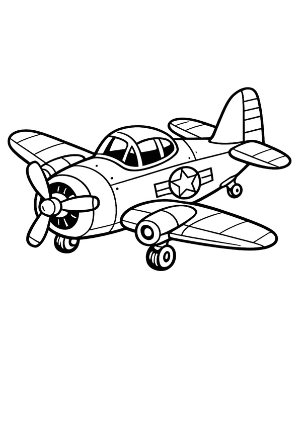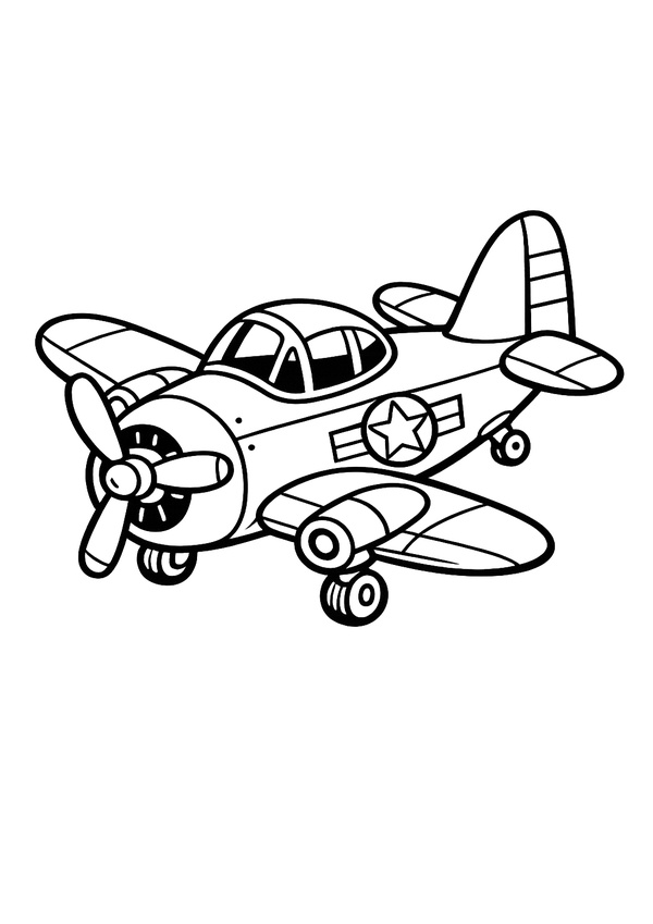 Ein klares Propellerflugzeug mit kräftigen Linien – perfekt für einfaches Ausmalbild ohne zu viele Details.