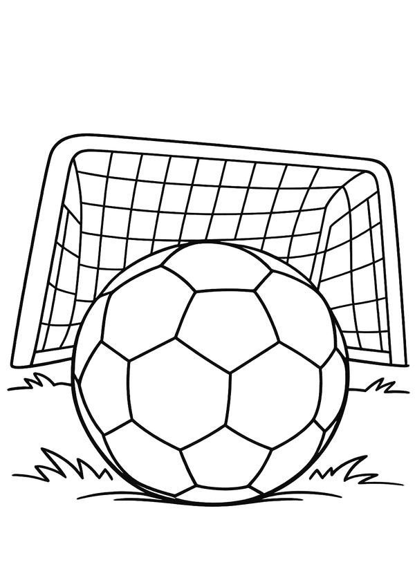 Ein klares Motiv mit Ball und Tor – ideal für einfaches Ausmalen und schnelle Ausdrucke. Perfekt für Vorschulkinder und Grundschule.