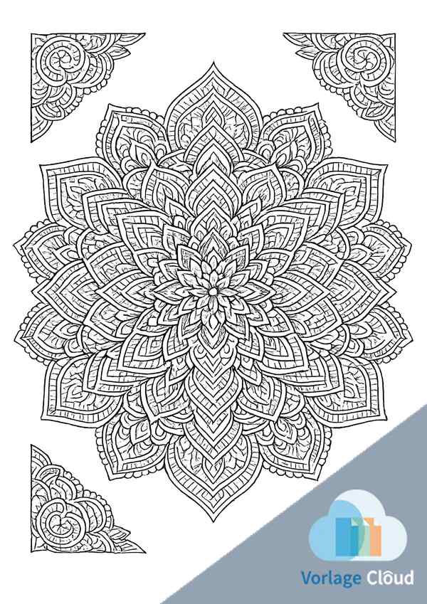 Ein Mandala mit klarer Mitte und vielen Flächen – ideal zum Ausmalen und für Farbverläufe.