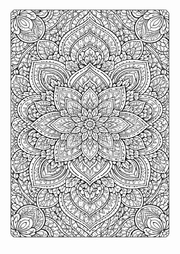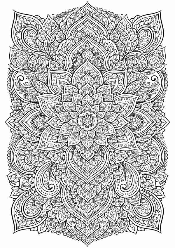 Vielschichtiges Design mit Ornamenten – ideal für kreative Muster und konzentriertes Ausmalen.