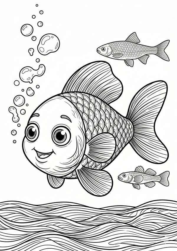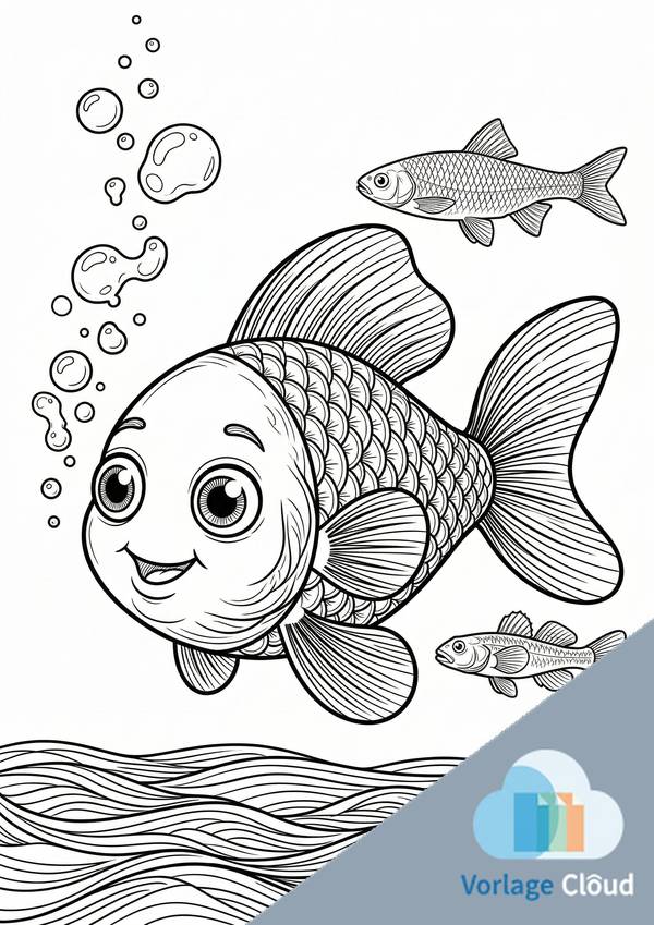 Ausmalen Fisch mit freundlichem Motiv – ideal für schnellen Malspaß und einfache Farbflächen.