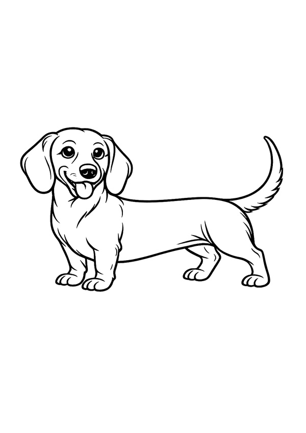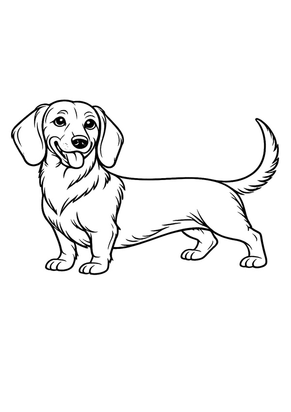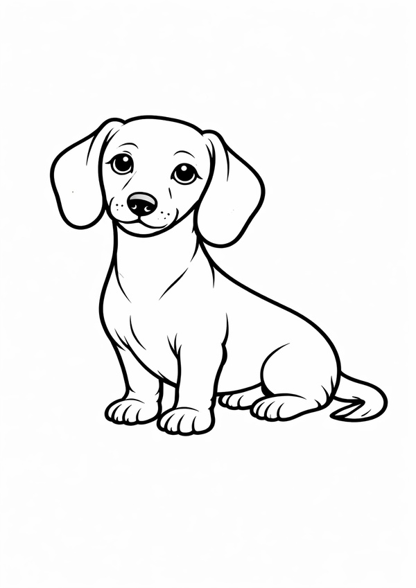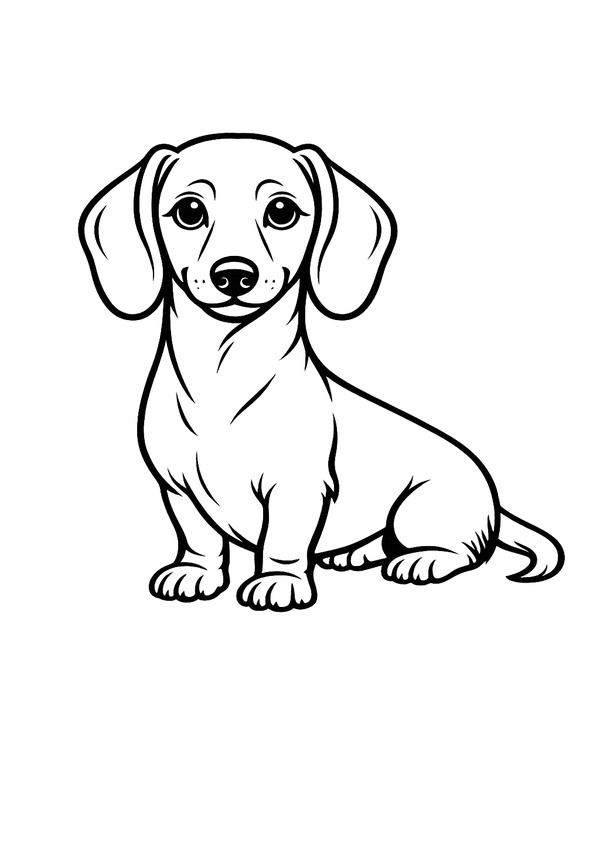 Ein niedlicher Dackel zum Ausmalen – mit sauberen Konturen für ein schönes Ergebnis.