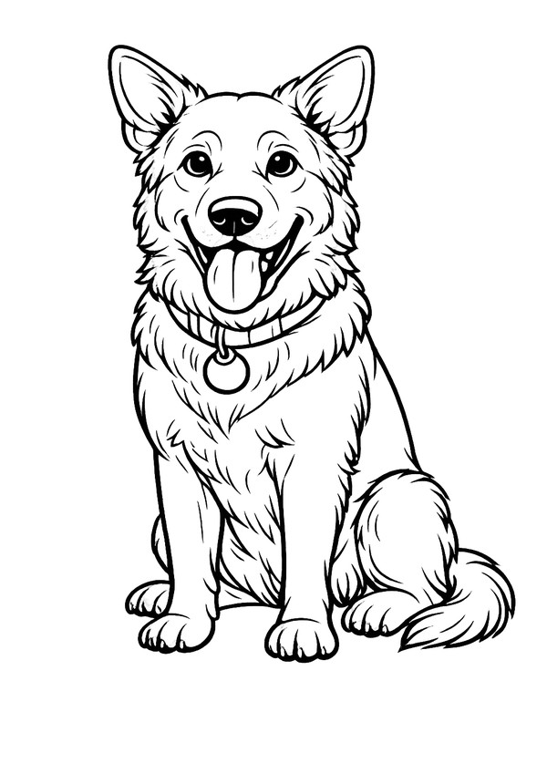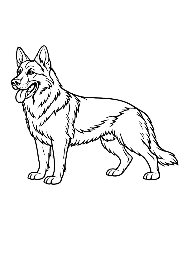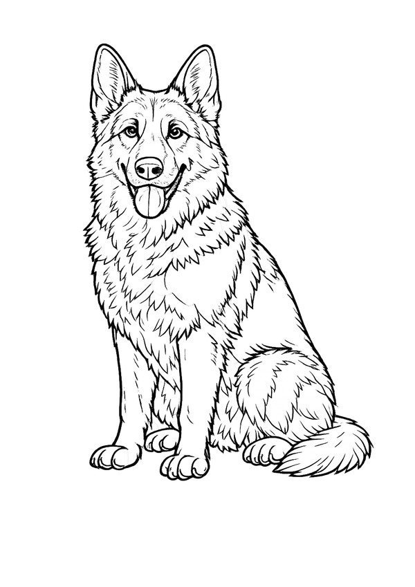 Ein freundlicher Deutscher Schäferhund als großes Ausmalbild mit klaren Konturen. Perfekt für kleine und große Fans – ideal zum Ausdrucken und direkt losmalen.