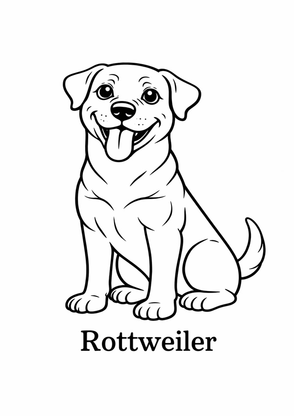 Ein freundliches Rottweiler-Motiv im klaren Linienlook – perfekt für Kinder und Anfänger.