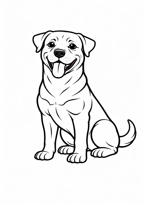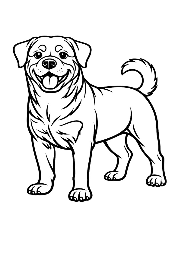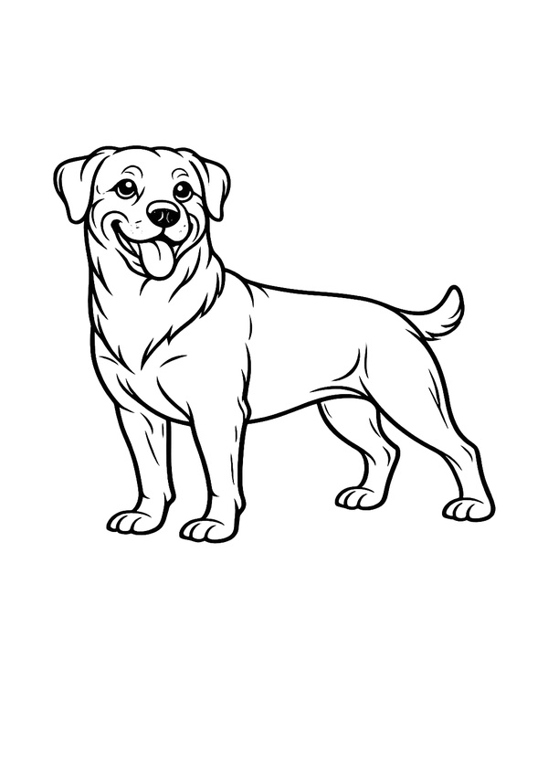 Ein stehender Rottweiler mit freundlichem Ausdruck und sauberen Konturen – ideal für Malbücher, Unterricht oder als kreative Pause zuhause.