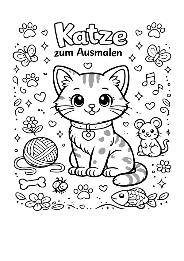 Katzen Ausmalen als süßes Motiv mit Deko-Elementen – perfekt für kreative Nachmittage.