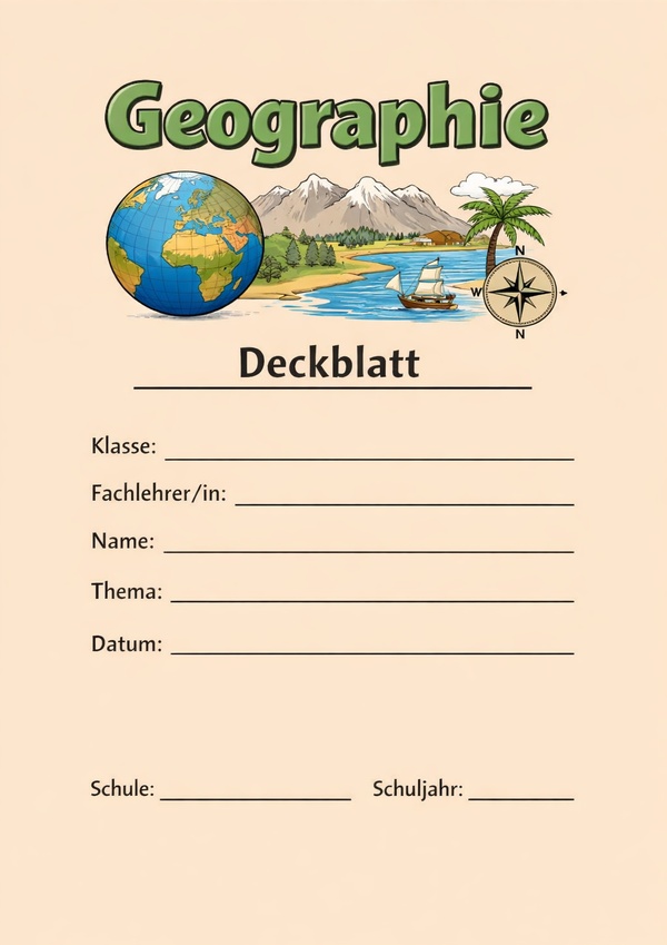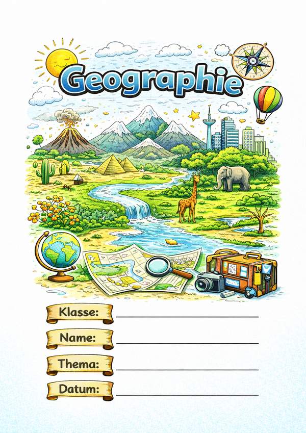 Du suchst nach schönen Deckblättern für Geographie, die du sofort ausdrucken kannst? Hier findest du 6 Geographie-Deckblätter als JPG, PDF und Word – direkt downloadbar, leicht anpassbar und ideal für Schule, Hefter und Ordner.