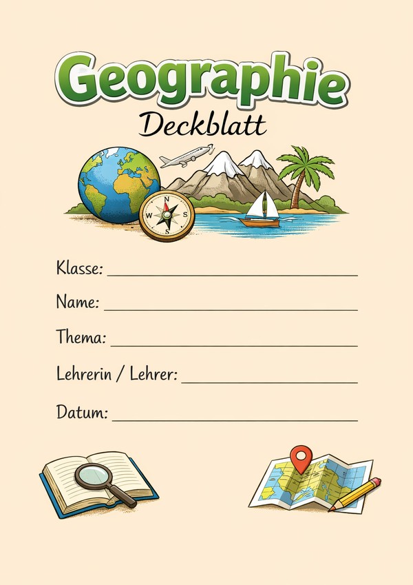 Deckblätter Geographie zum Ausdrucken als PDF und Word