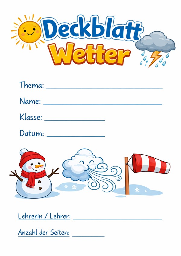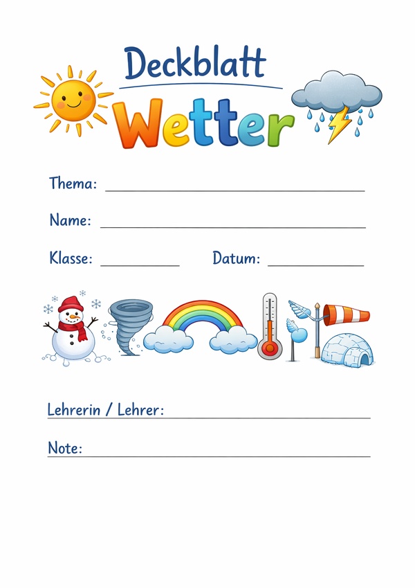Deckblätter Wetter zum Ausdrucken als PDF und Word