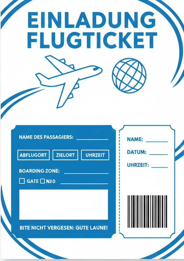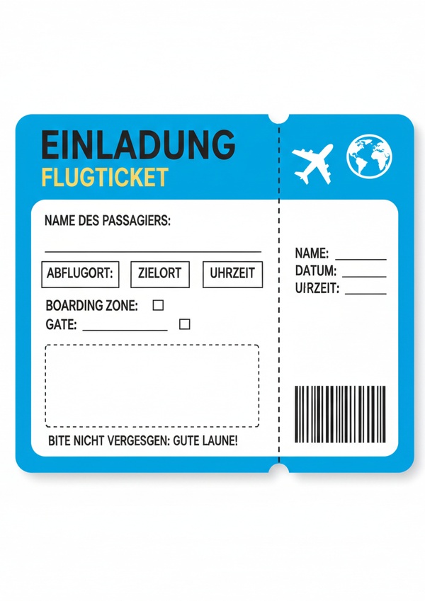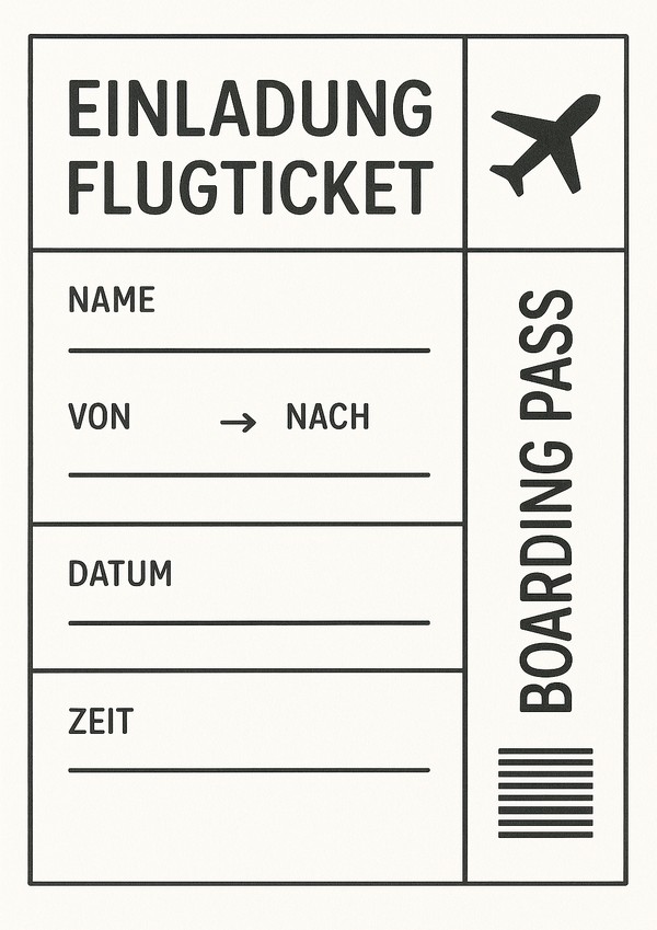Einladung Flugticket Vorlage zum Ausdrucken als PDF und Word