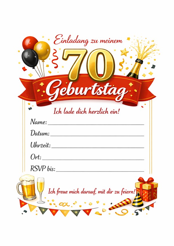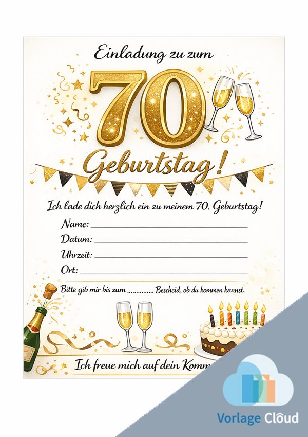 70 Geburtstag Einladung Vorlage zum Ausdrucken als PDF und Word