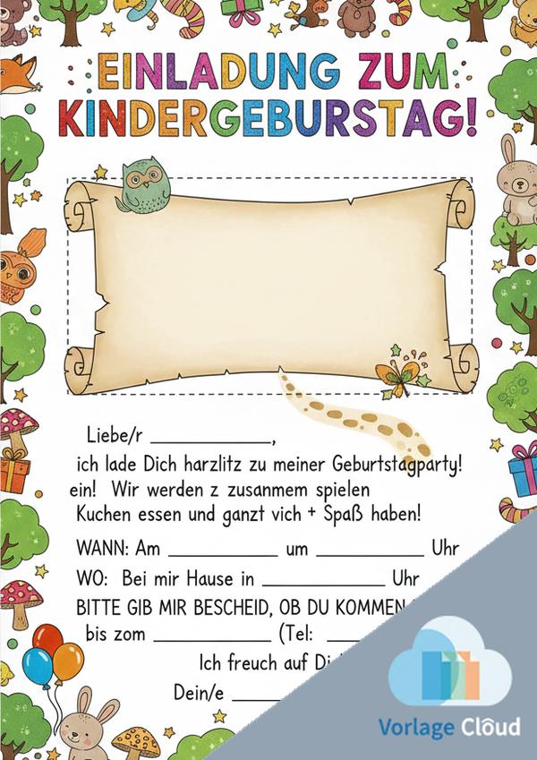 Einladung Kindergeburtstag Vorlage PDF Kostenlos