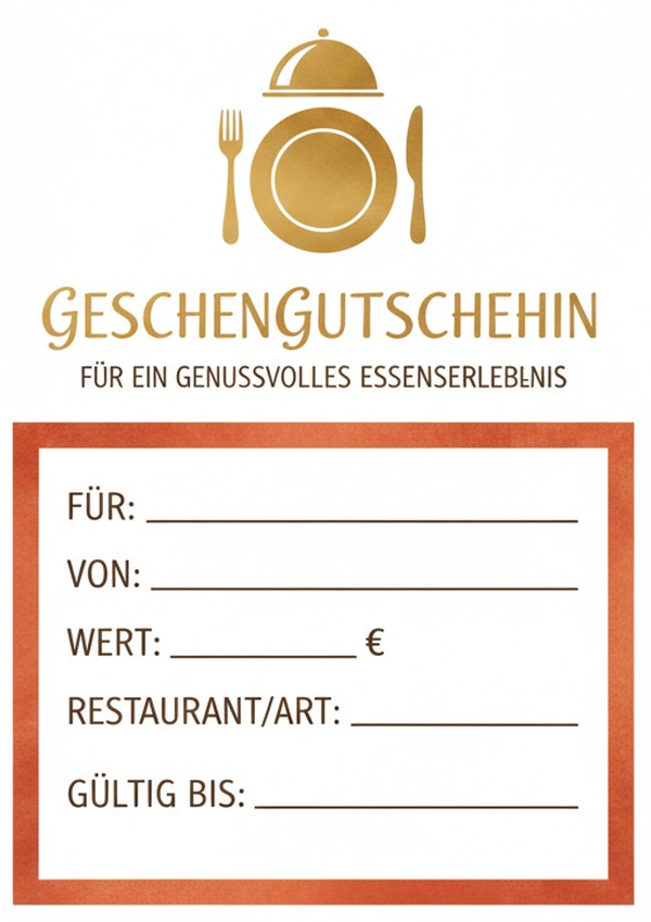 Du möchtest „Essen gehen“ verschenken? Hier findest du 6 passende Gutschein-Vorlagen zum Ausdrucken – als Bild, PDF und Word. Einfach herunterladen, ausfüllen und als persönliches Geschenk überreichen.