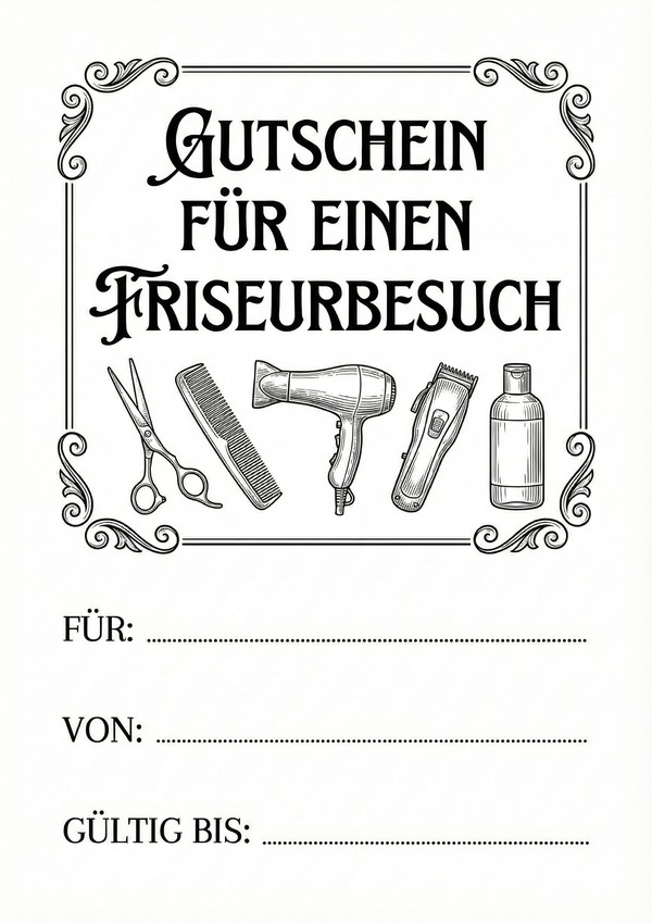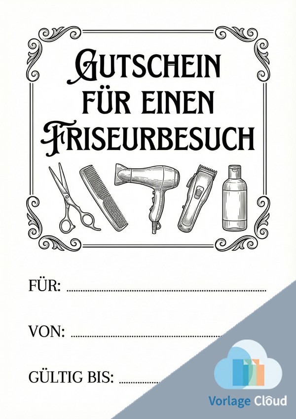 Gutschein für Friseur Vorlage zum Ausdrucken als PDF und Word