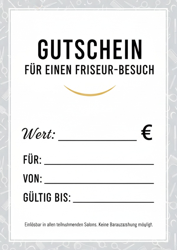 Schlichte Vorlage für einen Friseurbesuch mit Wertfeld – modern & klar und schnell ausfüllbar.