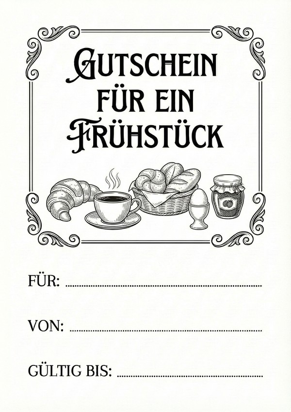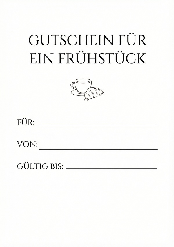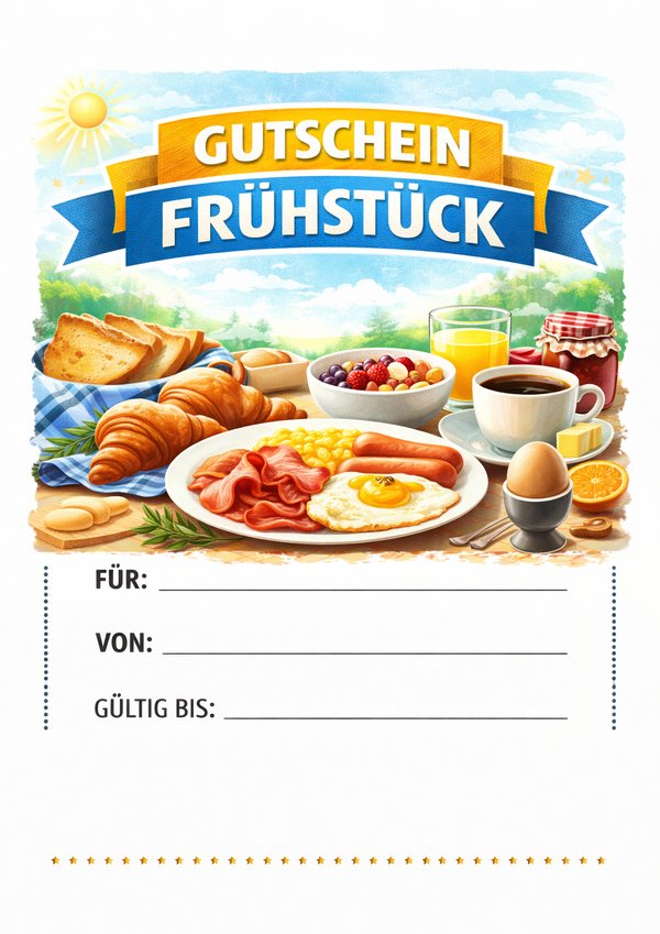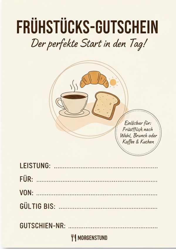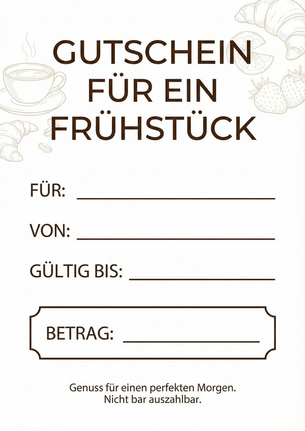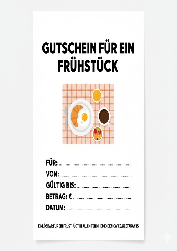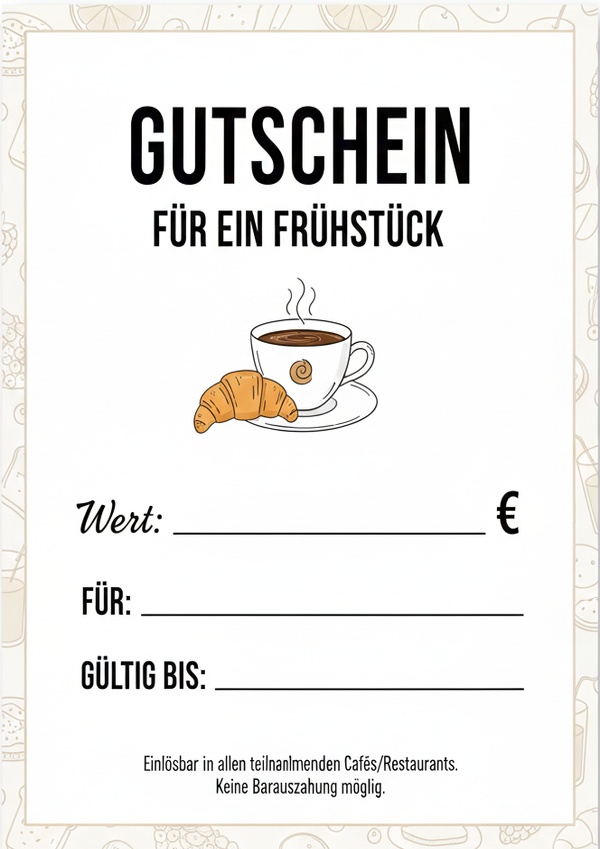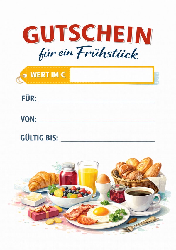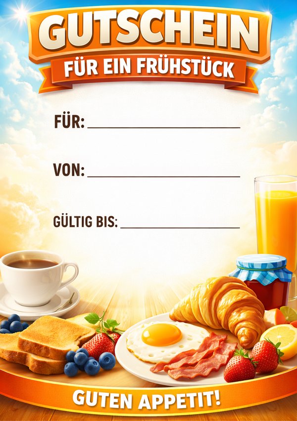 Frühstücksgutschein mit großem Motiv und Eintragefeldern – kostenlos und schnell.