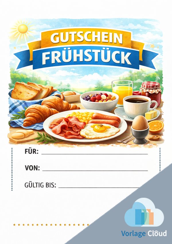 Gutschein für ein Frühstück Vorlage zum ausdrucken als PDF und Word
