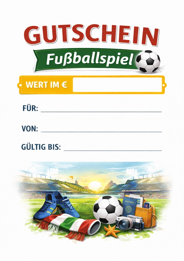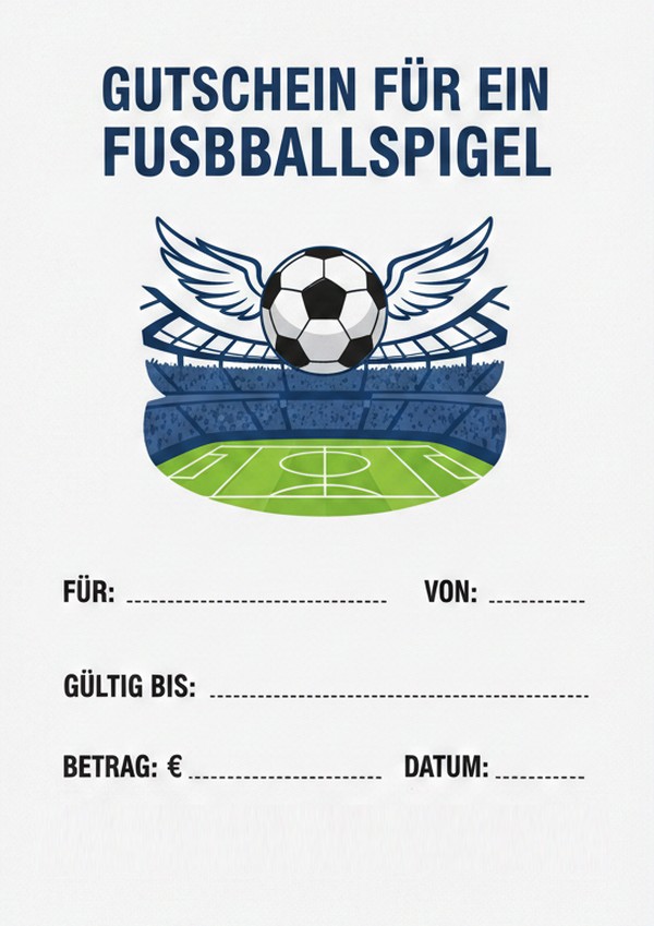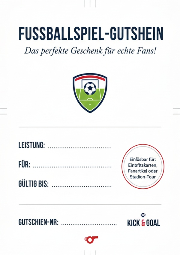 Du möchtest einen Gutschein für ein Fußballspiel schnell erstellen und direkt verschenken? Hier findest du 6 sportliche Gutschein-Vorlagen zum Ausdrucken – als Bild, PDF und Word. Einfach downloaden, ausfüllen und Fans eine echte Freude machen.