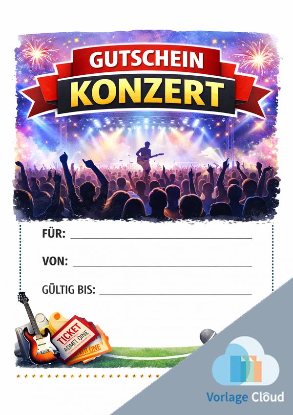 Gutschein Konzert Vorlage zum ausdrucken als PDF und Word