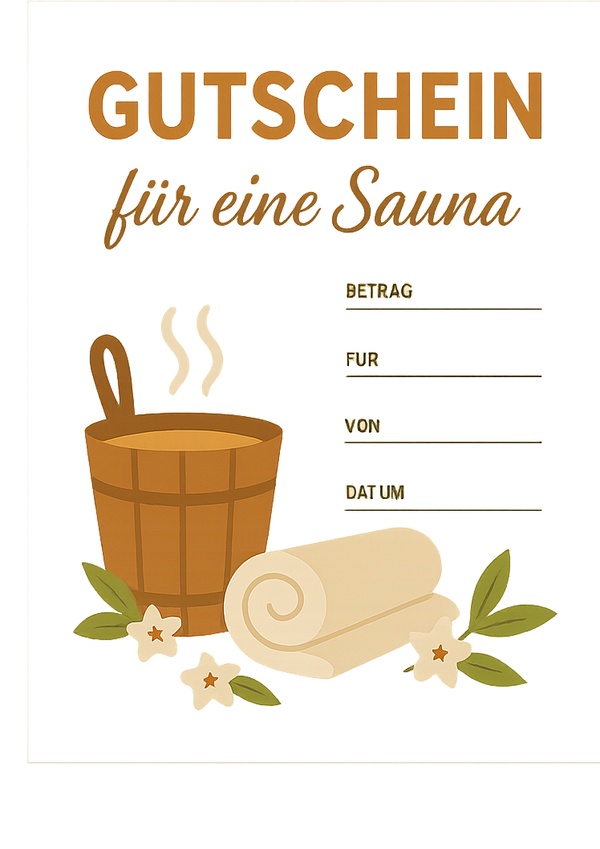 Alle Vorlagen lassen sich direkt herunterladen, ausfüllen und anpassen. Perfekt für Geburtstage, Weihnachten, Jahrestage oder einfach als kleine Aufmerksamkeit für einen gemeinsamen Saunabesuch.