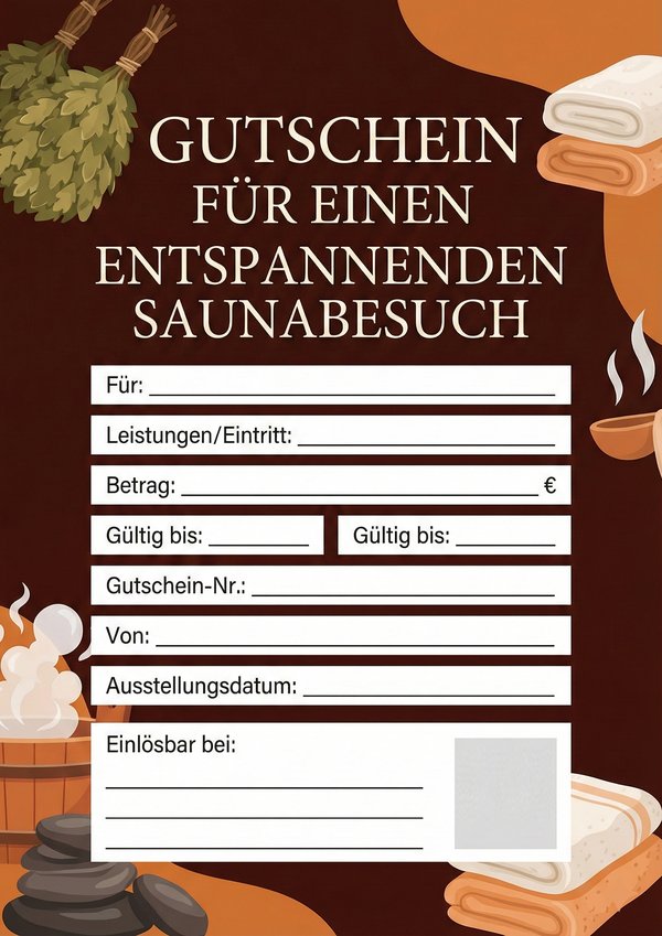 Ideal, wenn du einen gut lesbaren Saunagutschein mit klaren Feldern zum Ausfüllen benötigst.