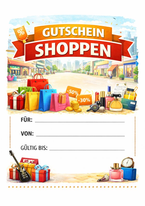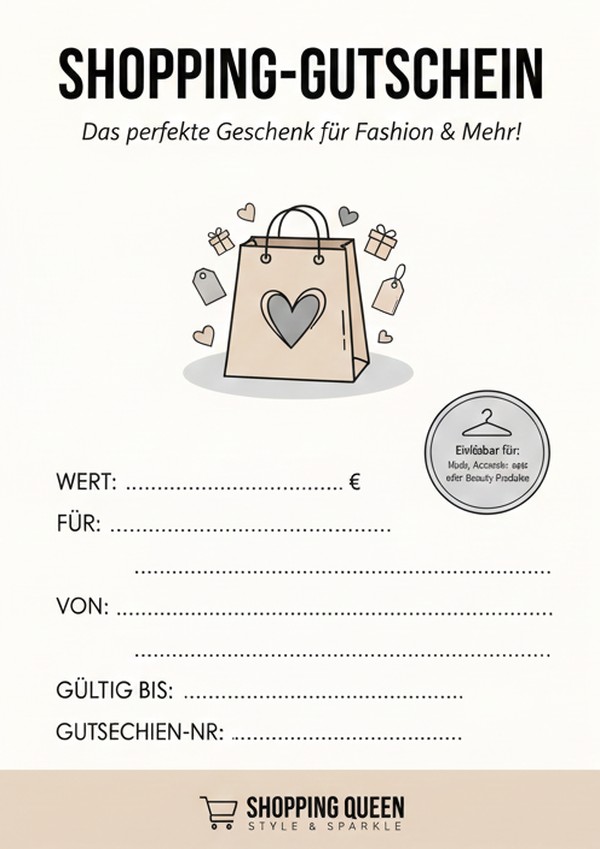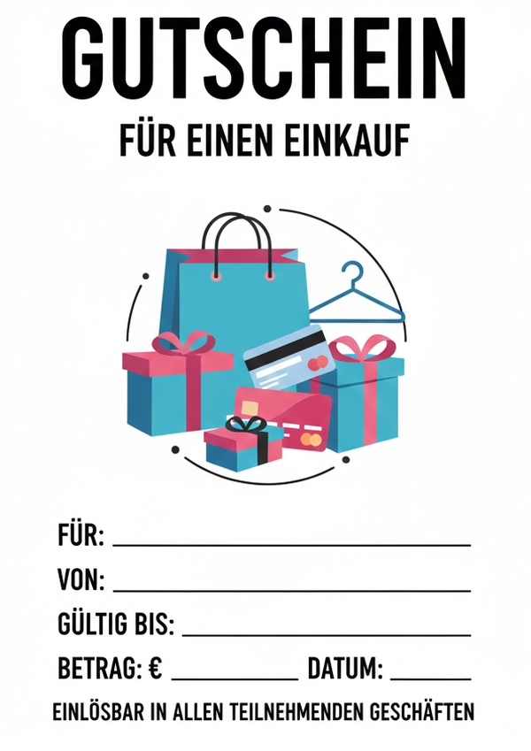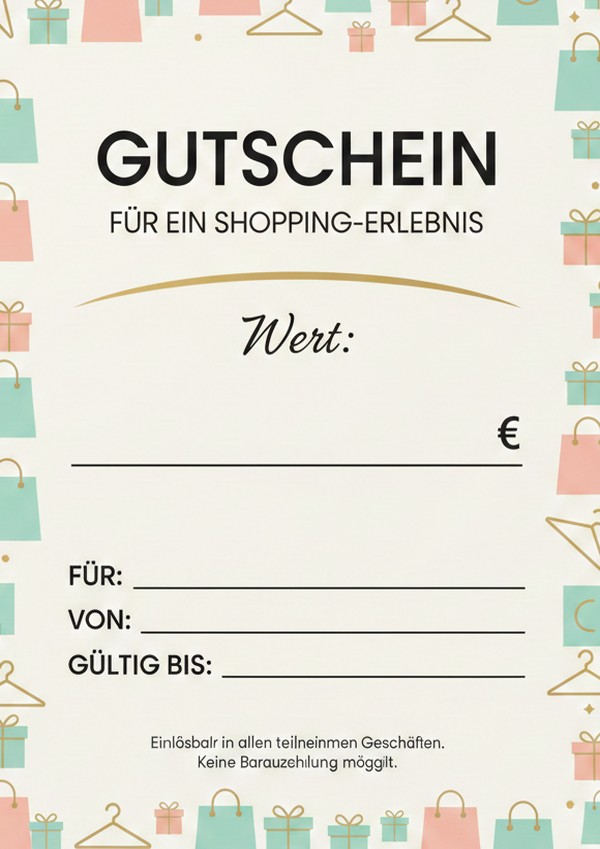 Ein universeller Shopping-Gutschein mit viel Platz für Details – flexibel einsetzbar für jedes Budget.