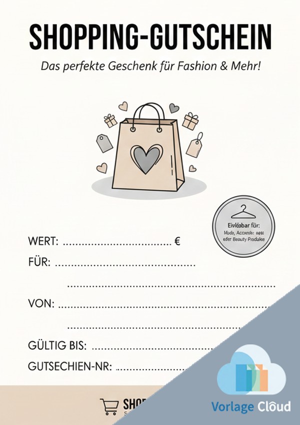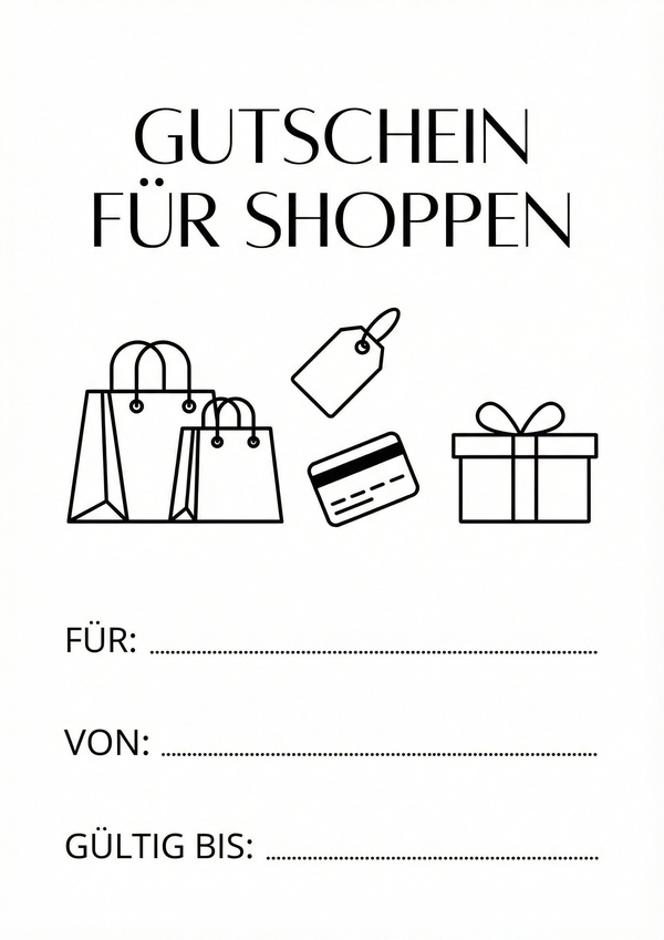 Ideal, wenn du einen Shopping-Gutschein mit Wertfeld suchst: sofort ausfüllbar und perfekt zum Verschenken.