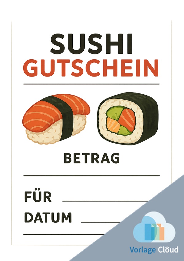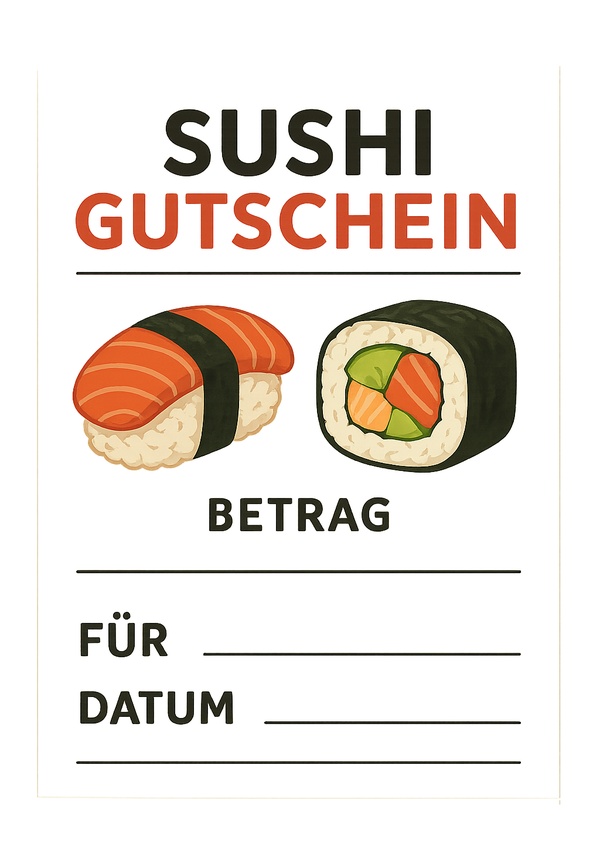 Sushi Gutschein Vorlage zum Ausdrucken als PDF und Word