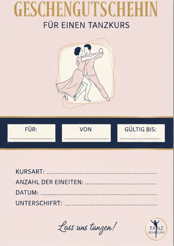Schlichtes Design für einen Gutschein Tanzkurs – ideal, wenn du schnell ein schönes Geschenk erstellen willst.