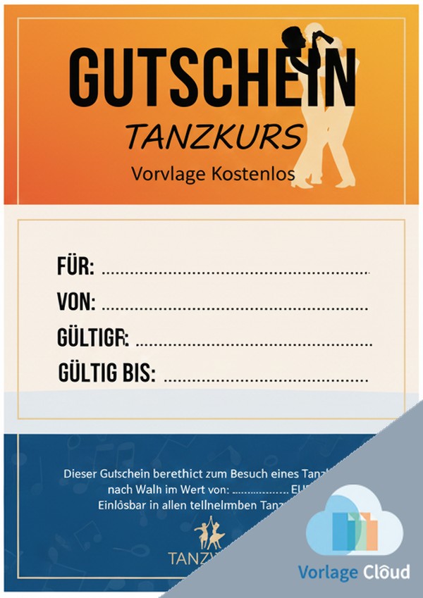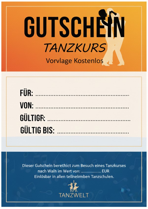 Gutschein Tanzkurs Vorlage zum ausdrucken als PDF und Word
