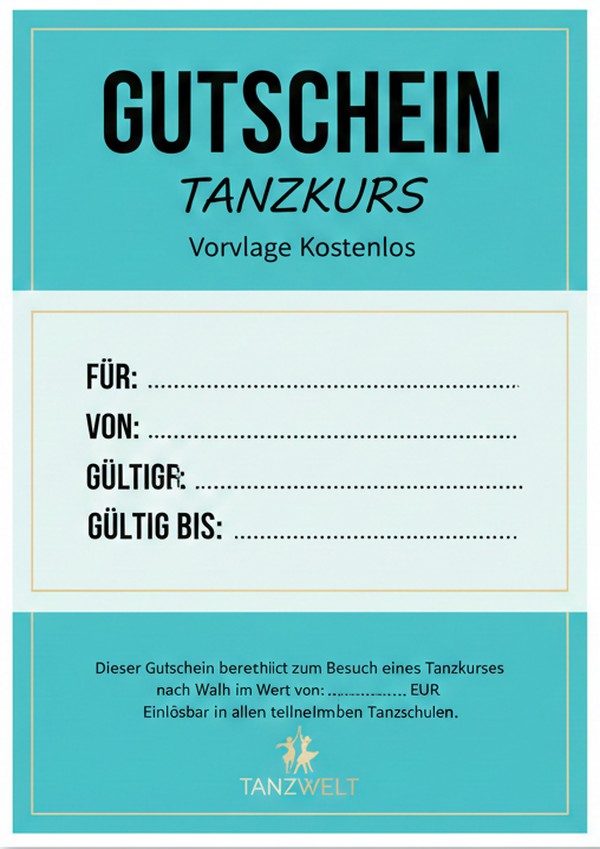Du möchtest einen Tanzkurs verschenken? Hier findest du passende Gutschein-Vorlagen für einen Tanzkurs – als PDF und Word, direkt downloadbar, leicht ausfüllbar und ideal zum Ausdrucken für ein persönliches Geschenk.