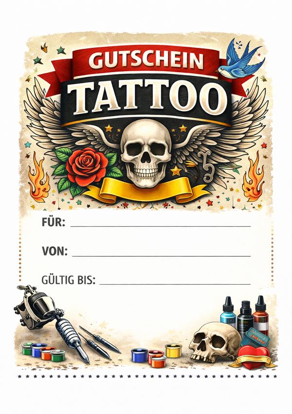 Rockiges Design für Tattoo-Fans – perfekt als Gutschein und sofort ausfüllbar.