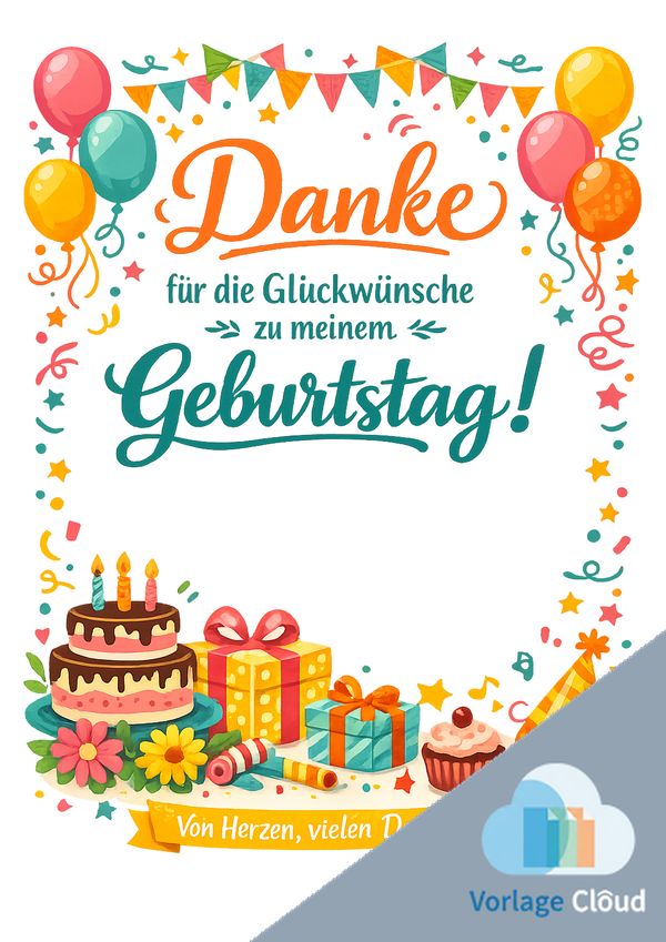 Geburtstag Dankeskarte zum ausdrucken als PDF und Word