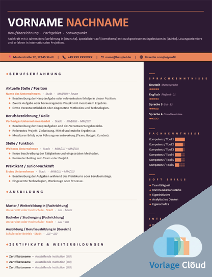 Sie eignet sich für Berufseinsteiger ebenso wie für erfahrene Kandidaten, die ihren Lebenslauf übersichtlich strukturieren möchten.