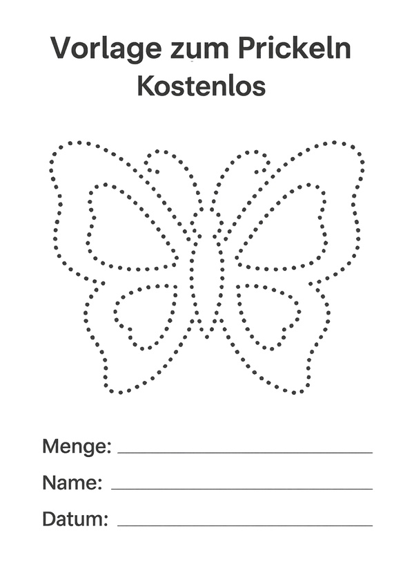Die Schmetterlingsvorlage ist perfekt für frühlingshafte Prickelbilder. Die vielen Kurven und Flächen regen zum genauen Arbeiten und Ausdauertrainieren an.