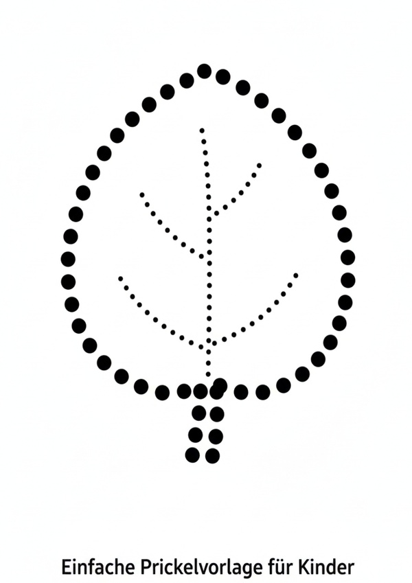 Dieses einfache Blättermotiv eignet sich gut für die ersten Prickelübungen mit Kindern. Die großen Punkte lassen sich leicht treffen und geben ein klares Blattbild.