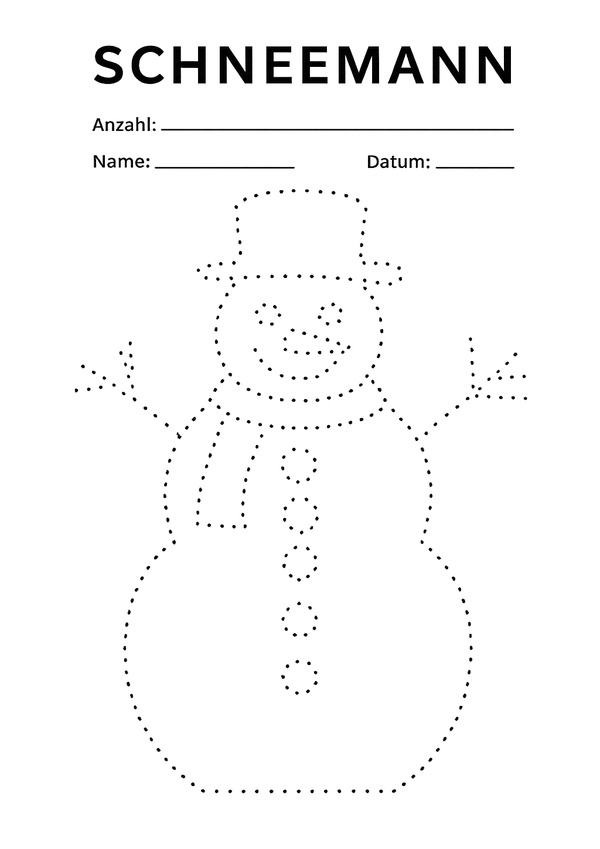 Der Schneemann aus Punkten ist eine tolle Winter-Prickelvorlage für Kinder. Durch die vielen Details entsteht ein schönes Bild, das sich gut als Fenster- oder Kartenmotiv eignet.